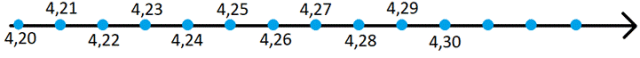 Każda kropka na pierwszej osi wskazuje wartość większą o 0,01 od poprzedniej kropki, a na drugiej – o 0,001 większą od poprzedniej kropki. Nie każda oś liczbowa musi zaczynać się od 0.