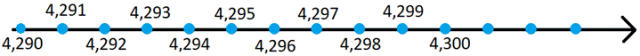 Uzupełnij brakujące wartości wskazywane przez kropki na osi.