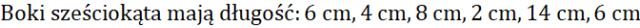 Policz długość boków sześciokąta, jeśli jego obwód jest równy 40 cm.