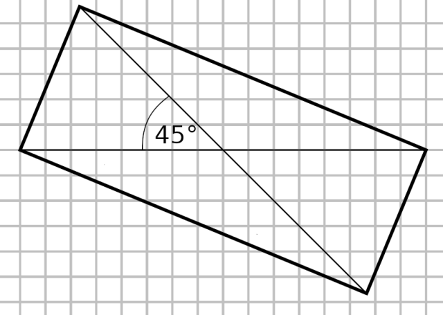 W tym zadaniu musisz wykonać rysunek prostokąta, który ma dwie przekątne długości , które przecinają się pod kątem .