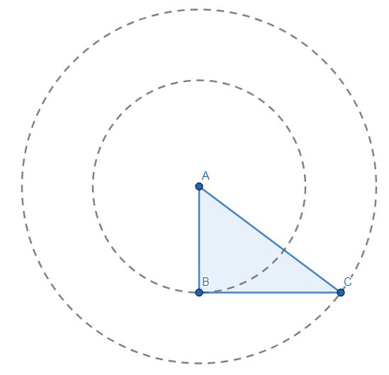 Poprowadź ramiona AB i AC. Na odcinku AB odłóż 3 jednostki, zaś na AC 5 jednostek długości. Połącz na końcu AB z AC poprzez BC pod kątem prostym.