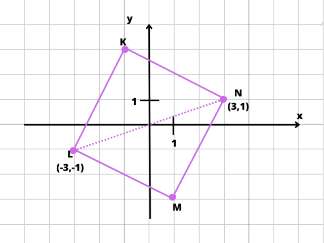 Wiadomo, że figurą jest kwadrat, ma więc boki tej samej długości i punkty KL i MN współliniowe.