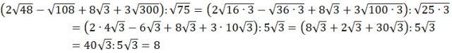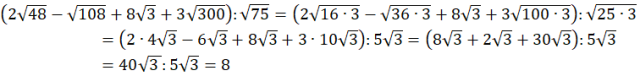 Każdą z liczb pod pierwiastkiem, przedstaw w postaci iloczynu dwóch liczb tak, aby jedną dało się spierwiastkować, a druga była liczbą 3. Następnie wyłącz jej wartość przed znak pierwiastka.