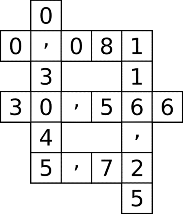 Wykonaj obliczenia i wpisz wyniki do diagramu. Przy mnożeniu ułamków dziesiętnych zapomnij na chwilę o przecinku. W końcowym wyniku zostaw tyle miejsc po przecinku, ile w sumie miejsc po przecinku miały czynniki.
