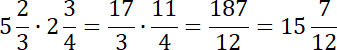 Aby pomnożyć liczby mieszane do ułamków niewłaściwych. Aby pomnożyć ze sobą ułamki, musisz pomnożyć przez siebie ich liczniki i mianowniki.