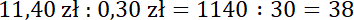 Podziel posiadaną kwotę przez cenę jednej bułki. Przed podzieleniem ułamków przesuń przecinek w obu liczbach o tyle miejsc w prawo, aby dzielnik był liczbą całkowitą.