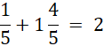 Musisz wykonać dodawanie ułamków o jednakowych mianownikach (dodać liczniki i wyłączyć całości).