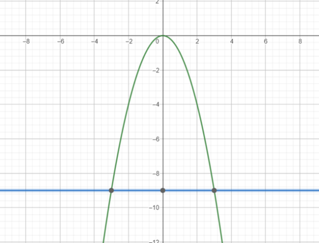Narysuj dwie osobne funkcje, f(x) = -x² oraz g(x) = -9 i odczytaj punkty przecięcia obu funkcji.