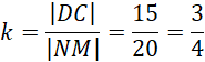 Zgodnie z poleceniem figury ABCD i KLMN są ze sobą podobne w skali k. Jesteśmy w stanie obliczyć tę skalę za pomocą proporcji odpowiednich boków w obu figurach. Znamy wartości dwóch odpowiednich boków: