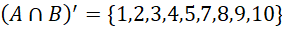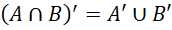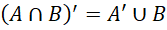 Następnie wypisz iloczyn zbiorów A i B, czyli ich elementy wspólne, a następnie dopełnienie uzyskanego zbioru oraz sumę dopełnień zbiorów A i B, czyli elementy znajdujące się w zbiorze A’ lub B’.
