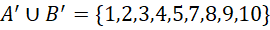 Wypisz wszystkie elementy zbiorów A i B oraz ich dopełnienia: A’, B’, czyli różnice całej przestrzeni z danym zbiorem.