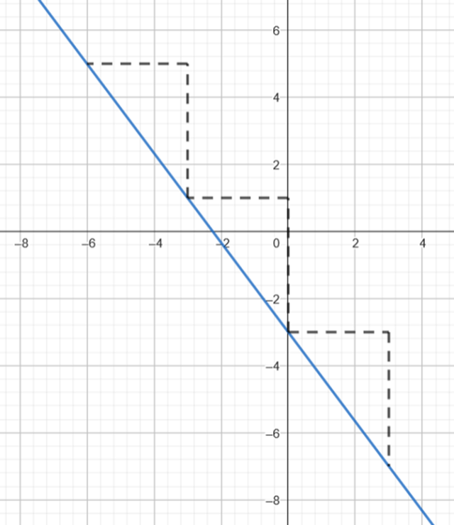 zauważ, że przecina ona oś OY w punkcie (0,-3), a wzrost argumentu o trzy jednostki odpowiada spadkowi funkcji o cztery jednostki i przedstaw to w układzie współrzędnych.