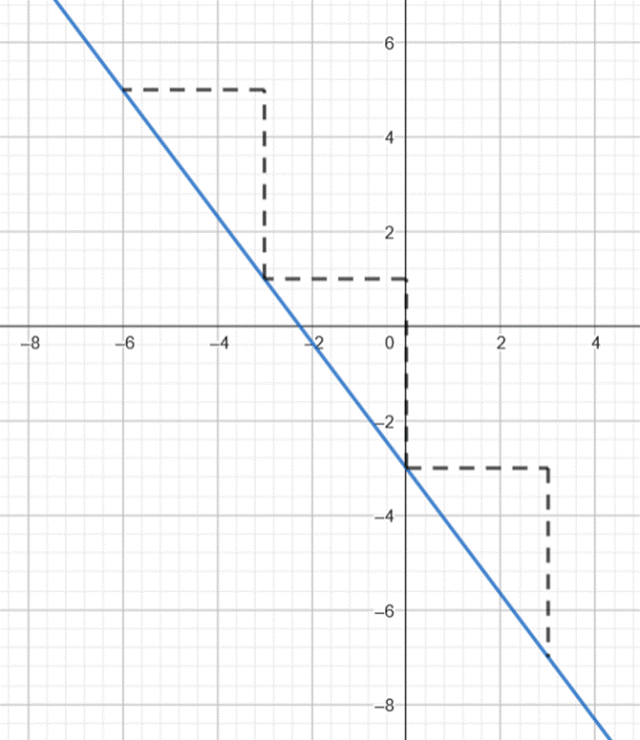 zauważ, że przecina ona oś OY w punkcie (0,-3), a wzrost argumentu o trzy jednostki odpowiada spadkowi funkcji o cztery jednostki i przedstaw to w układzie współrzędnych.
