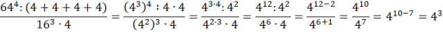 Skorzystaj z działania na pierwiastkach i przedstaw wartość wyrażenia w postaci potęgi liczby 4.