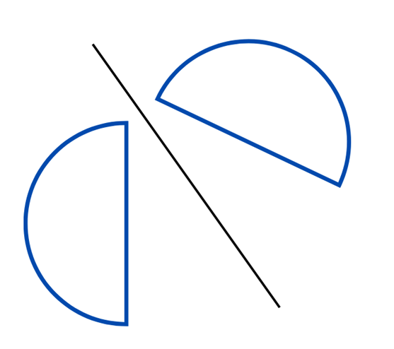 Skonstruuj figurę w taki sposób, że wszystkie jej punkty pokrywają się z odcinkiem po drugiej stronie prostej.
