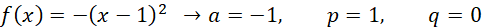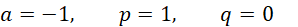 Musisz odczytać z podanego wykresu poszczególne wartości współczynników a, p i q.