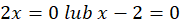 Zauważ, że wynikiem mnożenia jest 0, jeśli któraś z mnożonych liczb to 0, więc rozważ dwa przypadki: