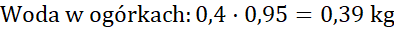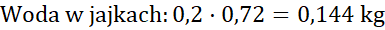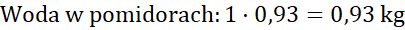 Policz zawartość wody w sałatce (1 kg pomidorów, 0,4 kg ogórków, 0,1 kg cebuli i 0,2 kg jajek) i określ czy jest jej więcej czy mniej niż 90%.