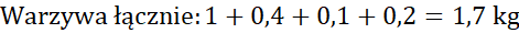 W tym ćwiczeniu musisz obliczyć zawartość wody w każdym warzywie, masę sałatki i jaką jej część stanowi woda.