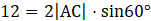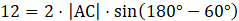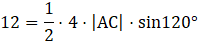 Wyznacz |AC| w trójkącie ABC o polu równym