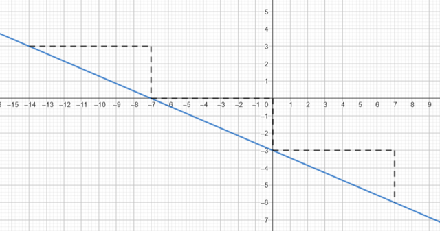 zauważ, że przecina ona oś OY w punkcie (0,-3), a wzrost argumentu o siedem jednostek odpowiada spadkowi funkcji o trzy jednostki i przedstaw to w układzie współrzędnych.