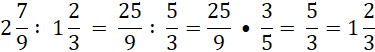 Dzielenie musisz zastąpić mnożeniem przez odwrotność dzielnika. Liczby 9 i 3 oraz 5 i 25 należy skrócić.