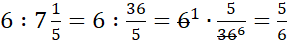 Zmień dzielnik na ułamek niewłaściwy. Zamień dzielenie na mnożenie przez odwrotność dzielnika. Potem mnożysz licznik przez licznik, a wynik przepisujesz do licznika w wyniku. Pomnóż też mianownik przez mianownik, a wynik przepisz do mianownika w wyniku. Jeśli skracasz liczby, to pamiętaj, aby mnożyć liczby, które dopisaliśmy – nie mnożymy skreślonych liczb.
