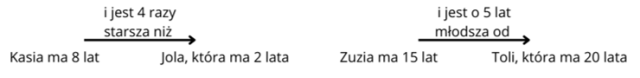 Uzupełnij grafy tak, aby wiek dziewczynek był zgodny z prawdą. W przypadku poznania wieku Joli musisz wiek Kasi podzielić przez 4: 8 : 4 = 2.