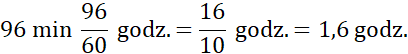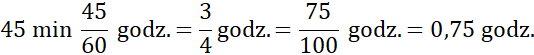 W zadaniu tym jednostkę godz. zastępujesz wyrażeniem 60 min, natomiast jednostkę min jako 1/60 godz.