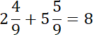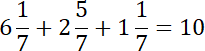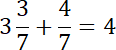 Dodaj do siebie cyfry całości tych liczb (3 + 0 = 3 oraz 2 + 5 = 7 i 6 + 2 + 1 = 9), a następnie liczniki (cyfry, które znajdują się nad kreską ułamkową) 3 + 4 = 7 oraz 4 + 5 = 9 i 1 + 5 + 1 = 7, a cyfra pod kreską ułamkową zostaje bez zmian. Jeżeli cyfra nad kreską ułamkową jest równa tej pod kreską ułamkową, to ułamek znika i do liczby całości musisz dodać 1.