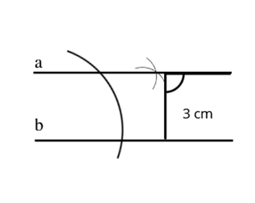 Skonstruuj przy użyciu podziałki dwie równoległe proste, oddalone od siebie o 3 cm.