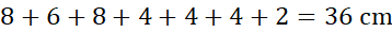 W tym ćwiczeniu musisz obliczyć obwód powstałego sześciokąta, dodając boki kwadratu i odejmując fragmenty boków prostokąta.