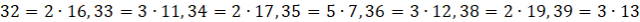 1 nie jest liczbą pierwszą. Liczby 32, 33, 34, 35, 36, 38, 39 są złożone: