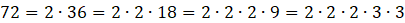 W tym zadaniu musisz przedstawić liczbę 72 w postaci wyniku mnożenia liczb pierwszych.