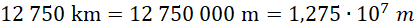 Musisz przekształcić wartość w kilometrach na metry a następnie zapisać te wartość w notacji wykładniczej.