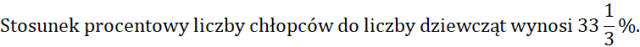| Chłopców jest mniej więcej o 33% mniej niż dziewcząt. | P | F |