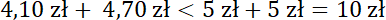 W tym zadaniu musisz porównać ceny produktów z kwotą 10 zł, nie wykonując dokładnych rachunków.