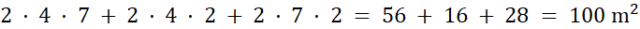 Policz powierzchnię prostopadłościanu 4 m x 7 m x 2 m.