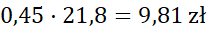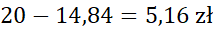 Podaj ilość reszty po zakupie 15 dag wafli, 45 dag pierniczków i 12 dag rodzynek, płacąc banknotem dwudziestozłotowym.