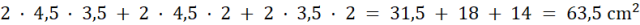 Policz powierzchnię prostopadłościanu 2 cm x 4,5 cm x 3,5 cm.