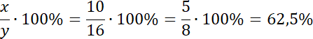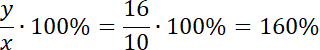 Wyznacz jakim procentem liczby x jest liczba y oraz jakim procentem liczby y jest liczba x, jeśli x = 10, y = 16.