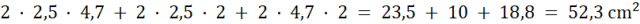 Policz powierzchnię prostopadłościanu 25 mm x 4,7 cm x 0,2 dm.