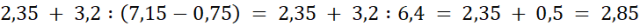W tym ćwiczeniu musisz policzyć powyższy przykład. Pamiętaj o kolejności wykonywania działań. Najpierw wykonaj działanie w nawiasie, następnie dzielenie, a na końcu dodawanie.