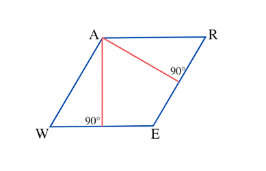 Wysokość to odcinek biegnący z wierzchołka i padający na bok pod kątem prostym. W tym rombie z wierzchołka A można poprowadzić dwie wysokości, których długości są sobie równe.