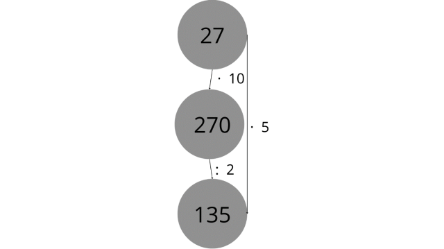 27 · 5 = 27 ·10 : 2 = 270 : 2 = 135.
