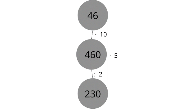 46 · 5 = 46 ·10 : 2 = 460 : 2 = 230.