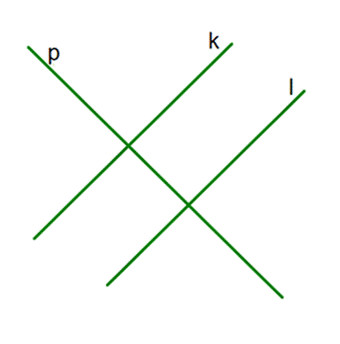 Istnieją dokładnie dwa poprawne rozwiązania. Możemy wymiennie stosować zapis k||l oraz l||k jak I również p ⟂k oraz k ⟂p. Żeby równocześnie spełnić warunki z polecenia, możemy raz górną prostą oznaczyć literką k, a dolną prostą literką l lub odwrotnie.