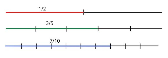 Narysuj trzy odcinki o długości 1 dm. Pierwszy podziel na 2 równe części, zaznacz kolorem czerwonym