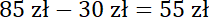 tańsze niż bluza, to dodając do ceny spodni i bluzy kwotę 30 zł, otrzymasz cenę dwóch bluz. Z ceny dwóch bluz oblicz cenę jednej bluzy, a następnie cenę spodni.