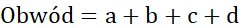 Wzór na obwód trapezu o podstawach a i b i ramionach c i d ma postać: